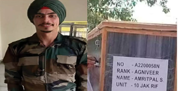 बीते मंगलवार 10 अक्टूबर को, एक जवान की गोली लगने से मौत हो गई। जम्मू कश्मीर के पुंछ में वह (LoC) लाइन ऑफ कंट्रोल पर सेना की ओर से तैनात किए गए थे। इस मामले से जुड़ा एक वीडियो तेज़ी से वायरल हो रहा है। इस वीडियो में दिख रहा है कि जवान के परिवार वाले उन्हें कंधा दे रहे हैं। इसी बीच ख़बर है कि जवान को सेना की तरफ़ से कोई ‘गार्ड ऑफ़ ऑनर’ नहीं दिया गया और न ही अंतिम विदाई। जवान की भर्ती अग्निवीर योजना के ज़रिए सेना में हुई थी। इस जवान का नाम अमृतपाल सिंह था, और उम्र केवल 21 साल थी।