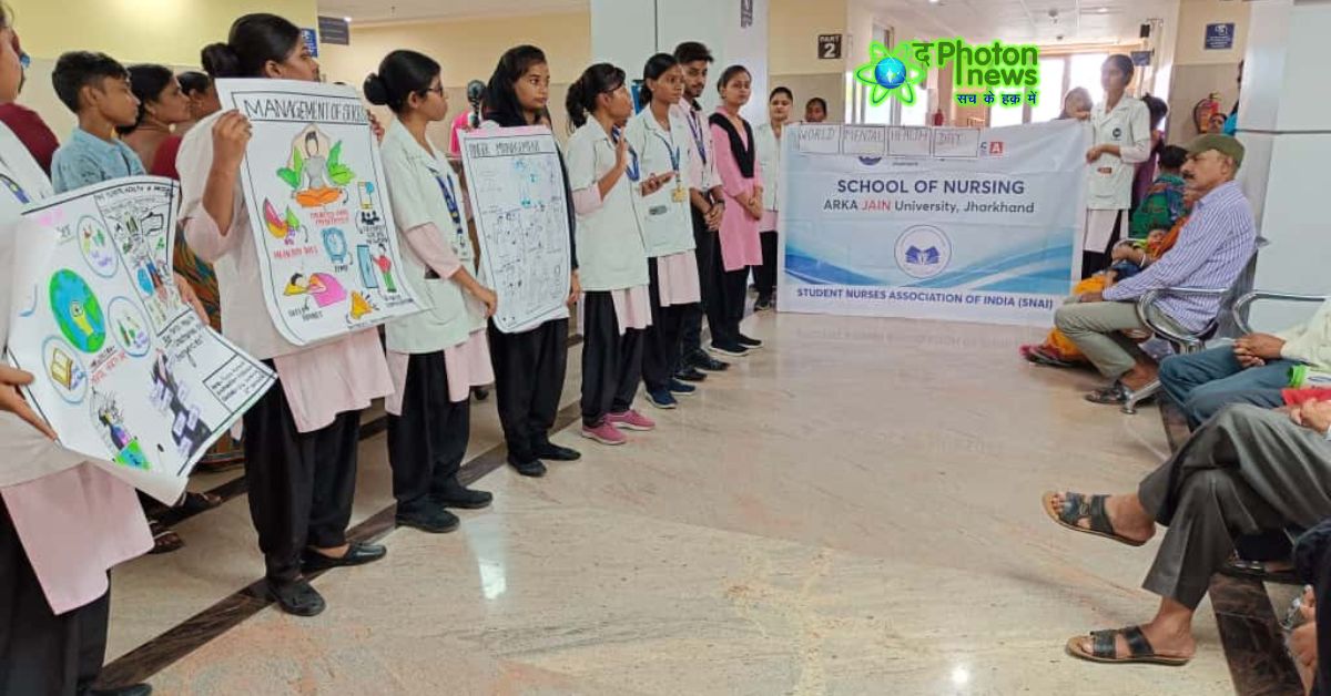 Jamshedpur (Jharkhand) : लौहनगरी जमशेदपुर स्थित अर्का जैन विश्वविद्यालय के स्कूल ऑफ नर्सिंग की ओर से विश्व मानसिक स्वास्थ्य दिवस मनाया गया। इस अवसर पर छात्र-छात्राओं ने MGM कॉलेज एवं अस्पताल के मनोरोग ओपीडी में एक सफल जागरूकता कार्यक्रम का आयोजन किया। इस वर्ष विश्व मानसिक स्वास्थ्य दिवस का विषय था “आपदाओं और आपात स्थितियों में सेवाओं तक पहुच कर मानसिक स्वास्थ्य।”