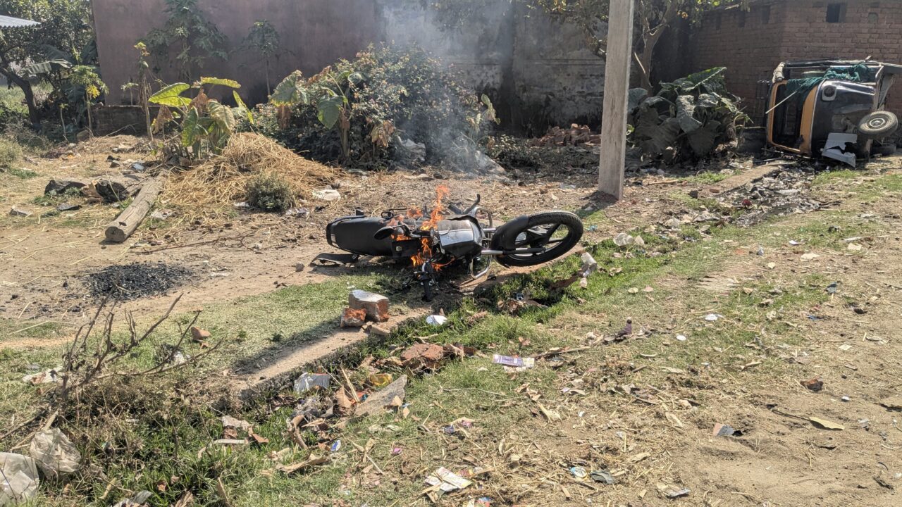 पत्थरबाजी होने के बाद इलाके में तनाव बढ़ गया। इसी क्रम में उपद्रवियों ने वहां खड़ी एक बोलेनो कार और दो बाइक में आग लगा दी। देखते ही देखते दोनों वाहन धू-धूकर जलने लगे। हालात को देखते हुए मौके पर अतिरिक्त पुलिस बल को बुला लिया गया। घटना के बाद पुलिस पूरे डूमरौन गांव को पुलिस छावनी में तब्दील कर दिया है।