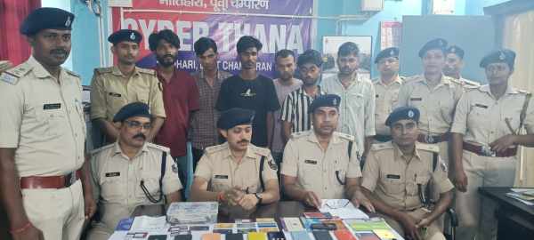 मोतिहारी (पूर्वी चंपारण) : जिला साइबर थाना की टीम ने पुलिस अधीक्षक स्वर्ण प्रभात के निर्देश पर बड़ी कार्रवाई करते हुए सिसवा बाजार (थाना पहाड़पुर) से साइबर ठगों के एक अंतरराष्ट्रीय गिरोह का पर्दाफाश किया है। पुलिस ने इस मामले में गिरोह से जुड़े छह साइबर अपराधियों को गिरफ्तार किया है। प्रारंभिक जांच में यह खुलासा हुआ है कि इस गैंग का नेटवर्क नेपाल और पाकिस्तान तक फैला हुआ है।