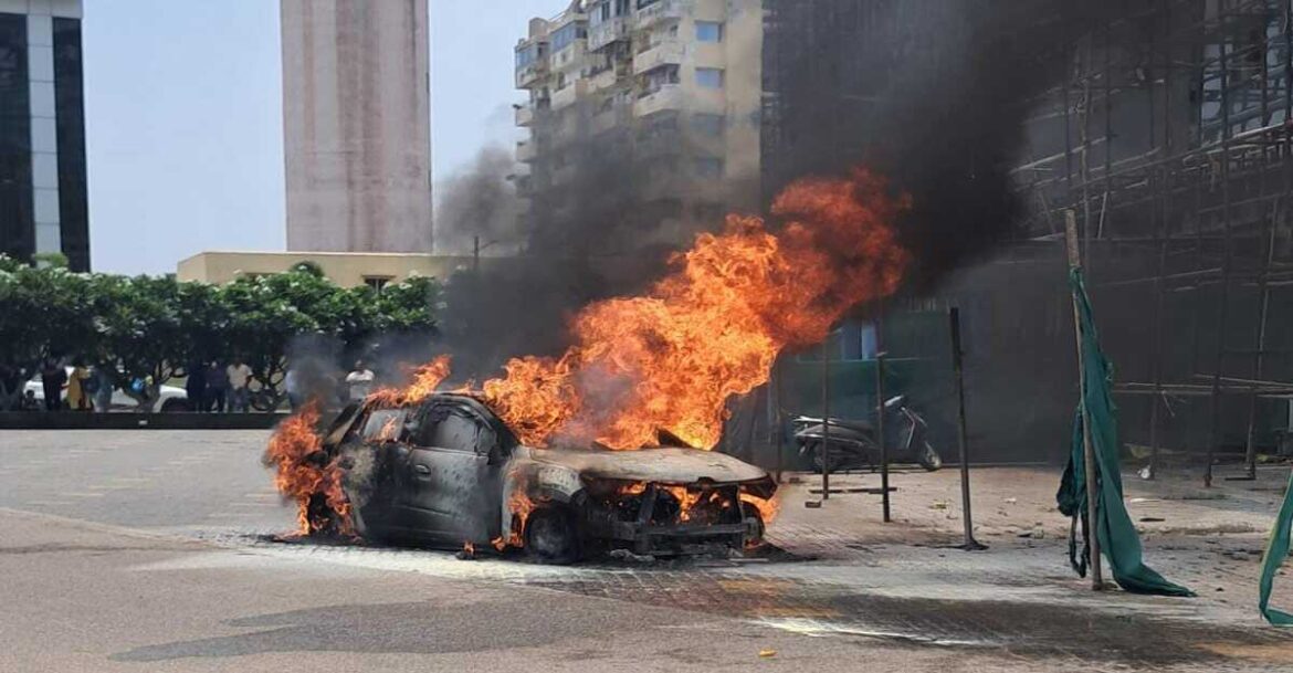 RANCHI FIRE NEWS: सेल सिटी में मॉल के बाहर कार में लगी आग, कोई हताहत नहीं