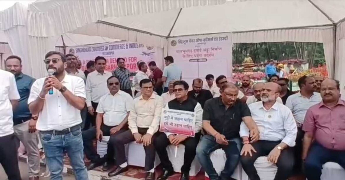 Jamshedpur : जमशेदपुर में धालभूमगढ़ एयरपोर्ट निर्माण की मांग को लेकर सिंहभूम चैंबर ऑफ कॉमर्स एंड इंडस्ट्रीज ने एक दिवसीय धरना दिया। बिष्टुपुर स्थित पोस्टल पार्क के पास शनिवार को आयोजित धरना के इस कार्यक्रम में चैंबर के पदाधिकारी और सदस्य बड़ी संख्या में शामिल हुए और जल्द से जल्द एयरपोर्ट निर्माण शुरू करने की मांग उठाई।