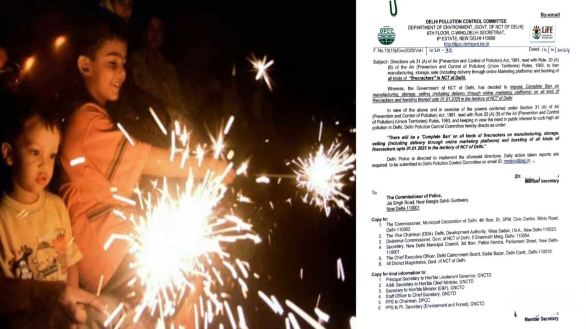 नई दिल्ली। राष्ट्रीय राजधानी में सर्दियों में धुंध और प्रदूषण की शुरुआत से पहले ही दिल्ली प्रदूषण नियंत्रण समिति (डीपीसीसी) ने राष्ट्रीय राजधानी क्षेत्र (NCT) में आज से 1 जनवरी, 2025 तक पटाखों पर प्रतिबंध लगाने की घोषणा की है। यह प्रतिबंध हर साल लगाया जाता है, हालांकि इस बार जल्दी घोषणा करने से व्यापारियों को बिना बिके स्टॉक से होने वाले नुकसान से बचने में मदद मिल सकती है, जो कि अंतिम समय में की जाने वाली घोषणाओं के खिलाफ एक आम शिकायत है।
