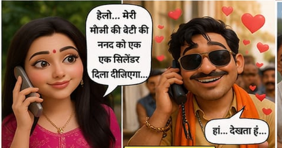 मंगला बताता है- पहले वह गांव में एक लड़की से प्यार करता था। लेकिन लड़की कभी उससे बात नहीं करती थी। प्यार, इश्क, मोहब्बत सब एकतरफा था। लेकिन अब अचानक उसका खोया प्यार उमड़ आया है। लड़की का कॉल भी आता है… मेरी मौसी की बेटी की ननद वहीं रहती है। उसे एक सिलेंडर दे दीजिएगा।