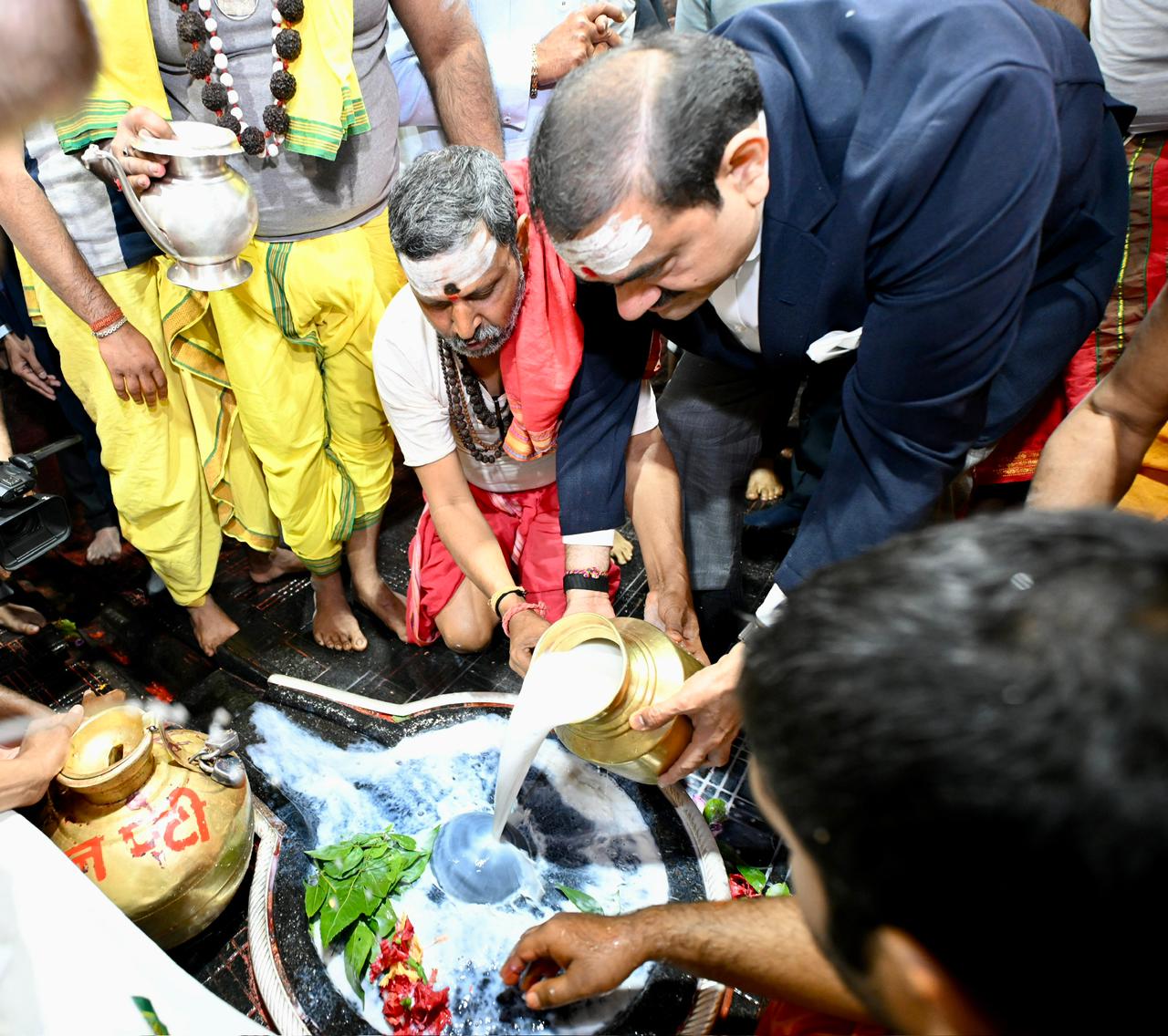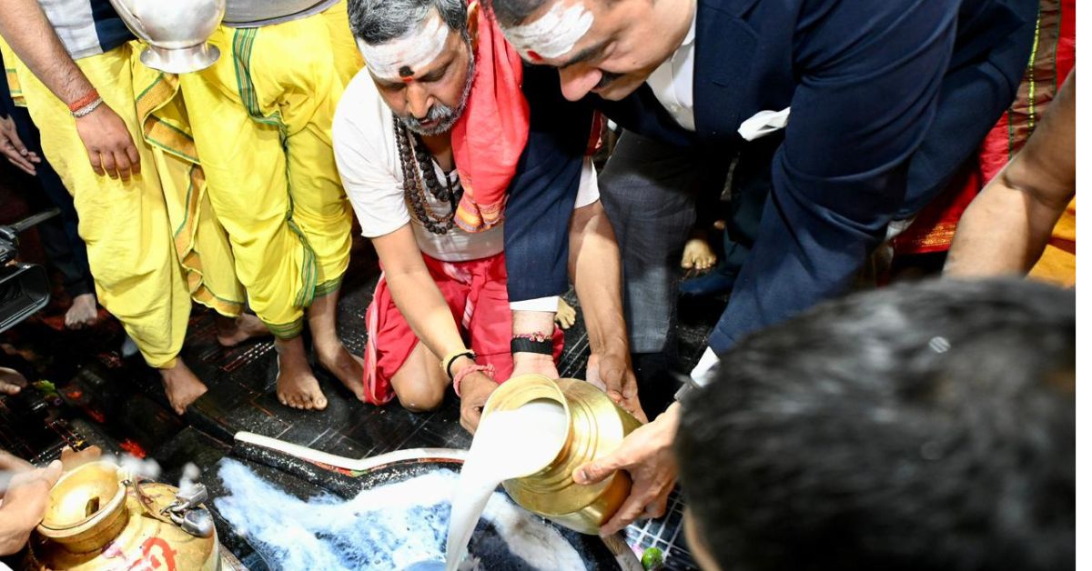 मंदिर परिसर पहुंचने पर उन्हें पहले प्रशासनिक भवन ले जाया गया। यहां वैदिक मंत्रोच्चार के बीच विधि-विधान से संकल्प कराया गया। उनके पुश्तैनी तीर्थ पुरोहित दानी नरौने और सहयोगियों ने पारंपरिक रीति से पूजा की प्रक्रिया संपन्न कराई। इसके बाद कड़ी सुरक्षा व्यवस्था के बीच उन्हें गर्भगृह में प्रवेश कराया गया, जहां उन्होंने बाबा भोलेनाथ के समक्ष विशेष पूजा-अर्चना की। वे लगभग सात मिनट तक गर्भगृह में रहे।
