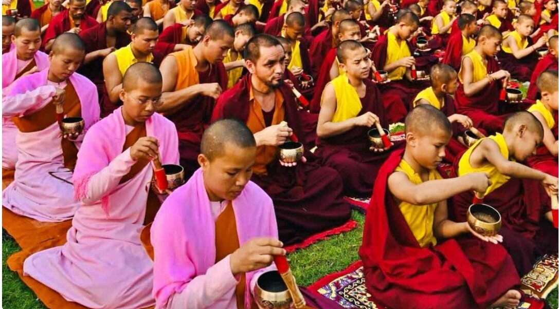 ध्वनि एवं समरसता का प्रदर्शन : सामूहिक रूप से बौद्ध मंत्रों के साथ सिंगिंग बाउल बजाया गया
