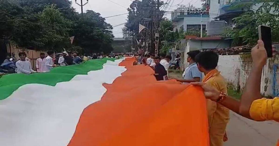 RANCHI: आजादी के अमृत महोत्सव के अवसर पर 10 अगस्त को श्री सुरेश्वर महादेव मंदिर से एक भव्य तिरंगा यात्रा निकाली गई। यह यात्रा प्राचीन श्रीराम मंदिर, गणपत नगर होते हुए आगे बढ़ी। यात्रा के दौरान श्रीराम मंदिर परिसर में विशेष स्वागत और आरती का आयोजन किया गया। समिति के सदस्य ने बताया कि शास्त्री मैदान में भारत का एक विशाल नक्शा तैयार किया गया, जिसमें हजारों लोग एक साथ खड़े होकर देशभक्ति का संदेश देते दिखे। इस कार्यक्रम का मुख्य आकर्षण सबसे लंबा तिरंगा रहा, साथ ही कई छोटे-बड़े झंडे भी शामिल रहे। सभी झंडों का निर्माण मंदिर परिसर में ही किया गया। आयोजन में सैकड़ों लोग शामिल हुए। आयोजकों ने बताया कि यह तिरंगा यात्रा पिछले तीन वर्षों से लगातार आयोजित की जा रही है। उनका कहना है कि देशभक्ति केवल एक दिन का भाव नहीं होना चाहिए, बल्कि इसे जीवनभर बनाए रखना चाहिए ताकि लोग देश के प्रति हमेशा समर्पित रहें।