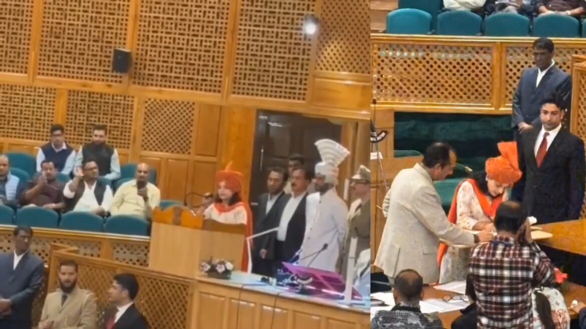 Home » Jammu-Kashmir Assembly: केसरिया पगड़ी बांध जय श्री राम के नारे के साथ BJP विधायक ने संस्कृत में ली शपथ