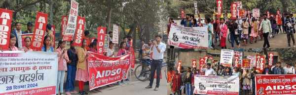 जमशेदपुर : ऑल इंडिया डेमोक्रेटिक स्टूडेंट्स ऑर्गनाइजेशन (AIDSO) की पूर्वी सिंहभूम जिला कमेटी ने 71वें स्थापना दिवस के अवसर पर साकची आमबागान मैदान से भव्य रैली निकाली। रैली में छात्र-छात्राओं ने साकची गोलचक्कर से उपायुक्त कार्यालय तक मार्च किया। इस दौरान शैक्षणिक समस्याओं को लेकर प्रदर्शन किया गया और मुख्यमंत्री को ज्ञापन सौंपा गया।