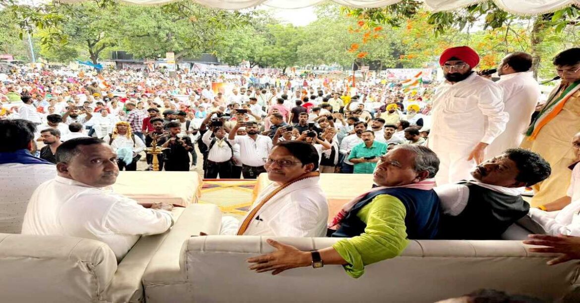 Jamshedpur : पूर्वी सिंहभूम जिला कांग्रेस कमेटी के तत्वावधान में 25 मई को साकची पार्किंग स्थल पर आयोजित जिला स्तरीय “संविधान बचाओ रैली” में बड़ी संख्या में लोगों ने भाग लिया। यह रैली जिलाध्यक्ष आनन्द बिहारी दुबे की अध्यक्षता में आयोजित की गई, जिसमें मुख्य अतिथि प्रदेश प्रभारी के. राजू और प्रदेश अध्यक्ष केशव महतो कमलेश उपस्थित थे। के. राजू ने रैली को संबोधित करते हुए कहा कि देश में आज संविधान पर खतरा मंडरा रहा है और कांग्रेस नेता राहुल गांधी इसे बचाने के लिए पूरे देश में आवाज बुलंद कर रहे हैं।