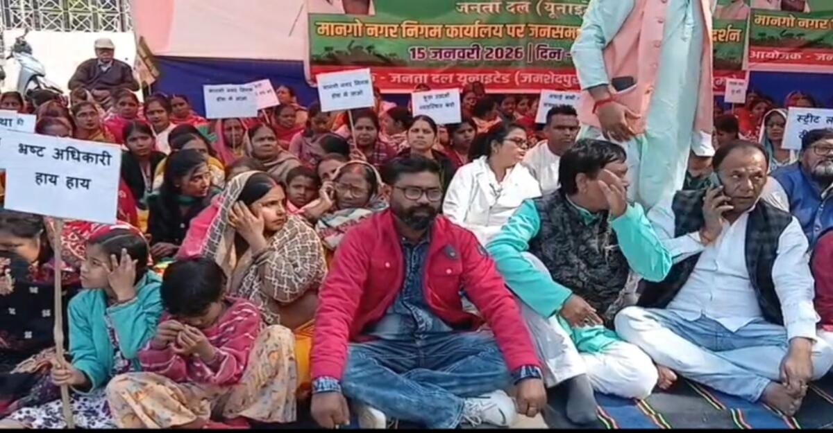 Jamshedpur : जमशेदपुर के मानगो नगर निगम क्षेत्र में व्याप्त कथित अनियमितताओं और जन समस्याओं को लेकर जनता दल यूनाइटेड (जदयू) जमशेदपुर महानगर इकाई की ओर से गुरुवार को विशाल धरना-प्रदर्शन किया गया। धरना का नेतृत्व जिला अध्यक्ष सुबोध श्रीवास्तव ने किया।
