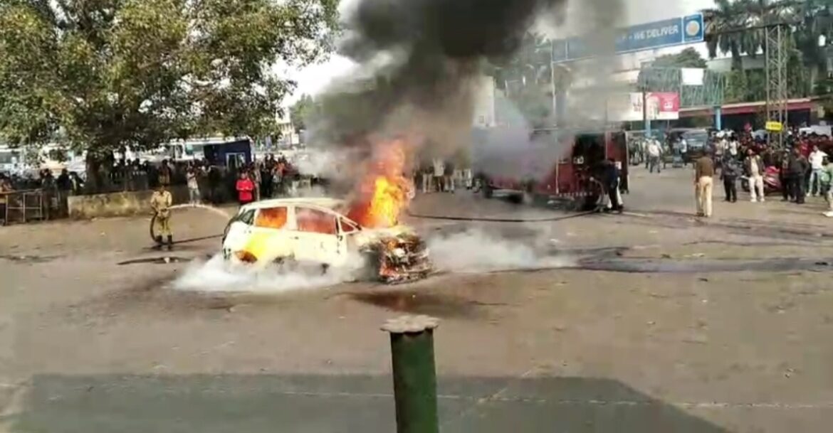 Jamshedpur : दक्षिण पूर्व रेलवे जोन स्थित टाटानगर रेलवे स्टेशन के मेन गेट के बाहर शनिवार की सुबह उस वक्त हड़कंप मच गया, जब एक होंडा जैज़ कार में अचानक आग लग गई। थोड़ी ही देर में कार आग की तेज लपटों में घिर गई। घटना सुबह करीब 9 बजे की है, जब स्टेशन परिसर यात्रियों से खचाखच भरा हुआ था।