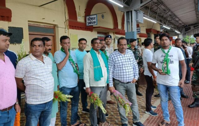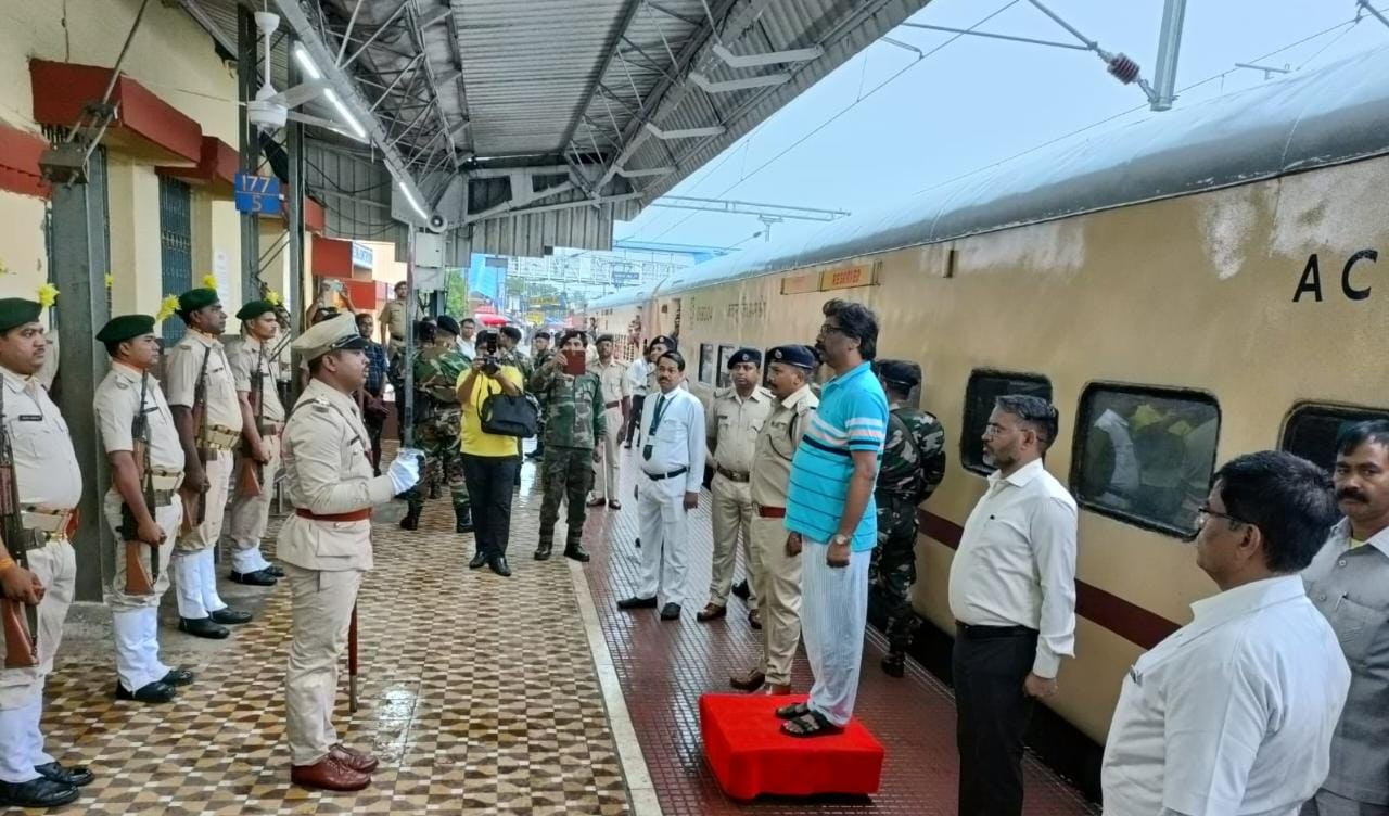 बता दें कि वनांचल ट्रेन के आने से पहले ही झामुमो कार्यकर्ता सीएम के स्वागत के लिए बरहरवा रेलवे स्टेशन पहुंच चुके थे. आज साहिबगंज में अहले सुबह ही तेज बारिश शुरू हो गयी. लेकिन, सीएम की सुरक्षा व्यवस्था को लेकर पुलिस पदाधिकारी व जवान पूरी तरह से मुस्तैद दिखे. गार्ड ऑफ ऑनर के लिए पहले एक नंबर प्लेटफॉर्म के लिफ्ट के समीप स्थल का चयन किया गया था, लेकिन बारिश शुरू होने के कारण प्लेटफॉर्म संख्या एक पर सीएम को गारद सलामी दी गयी. इसके बाद मुख्यमंत्री सभा स्थल पहुंचे।