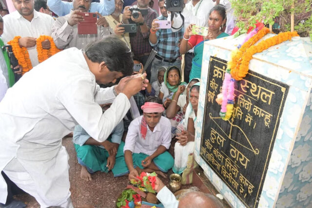 यहां भव्य कार्यक्रम में शामिल हुए और शहीद सिदो-कान्हू के वंशजों को सम्मानित किया. साथ ही 55 योजनाओं का शिलान्यास किया. इसके बाद मुख्यमंत्री सिदो-कान्हू के वंशजों से मुलाकात की. बता दें कि सिदो-कान्हू हूल क्रांति के नायक थे. आदिवासियों को एकजुट कर उन्होंने अंग्रेजों और सामंतों के खिलाफ विद्रोह किया था. इस नायक की याद में हर साल उनकी जयंती और पुण्यतिथि पर भोगनाडीह में विशेष आयोजन होते हैं.