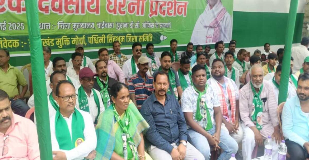चाईबासा : आदिवासियों के लिए अलग सरना धर्म कोड की मांग को लेकर झारखंड मुक्ति मोर्चा (झामुमो) ने मंगलवार को चाईबासा में जोरदार धरना प्रदर्शन किया। प्रदर्शन के बाद झामुमो नेताओं ने राष्ट्रपति के नाम एक ज्ञापन उपायुक्त को सौंपा।