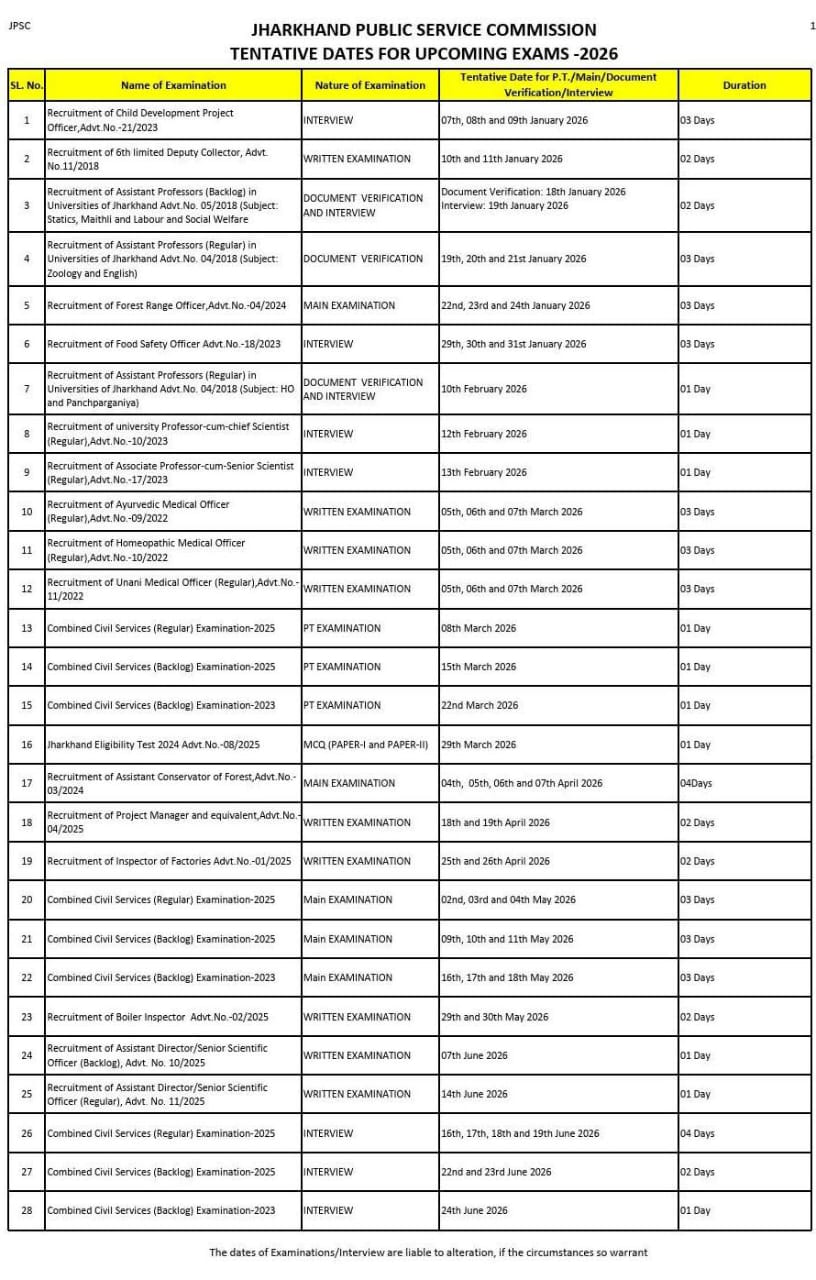 JPSC NEWS: जेपीएससी ने जारी किया 2026 का संभावित परीक्षा कैलेंडर