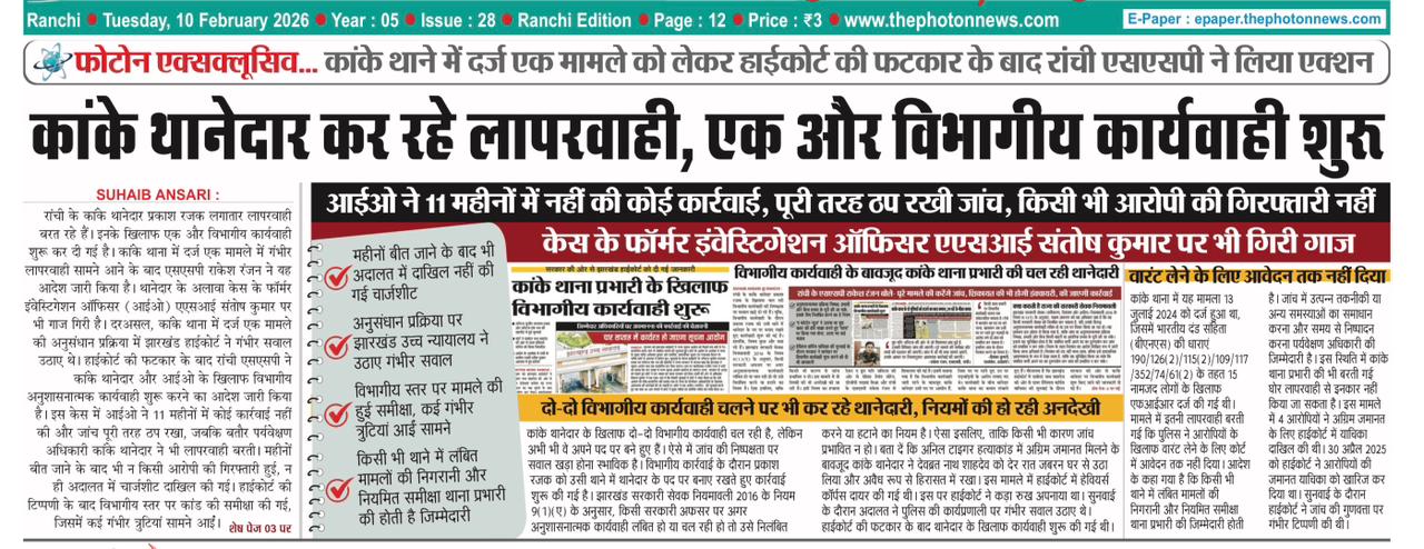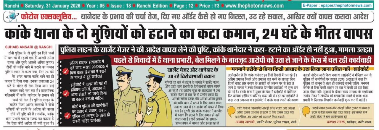 Police Misuse Power Jharkhand : रांची : रांची जिले के कांके थानेदार प्रकाश रजक भू-माफिया को संरक्षण देने में इन दिनों लगातार सुर्खियों में रह रहे। कांके इलाके की एक आदिवासी जमीन संबंधी विवाद का मामला अब झारखंड हाईकोर्ट पहुंच गया है। गढ़ हुसिर निवासी सुभाषो देवी ने कांके थाना प्रभारी के खिलाफ झारखंड हाईकोर्ट में क्रिमिनल रिट याचिका दायर की हैं, जिसकी फाइलिंग संख्या 5283/2026 दायर है।
