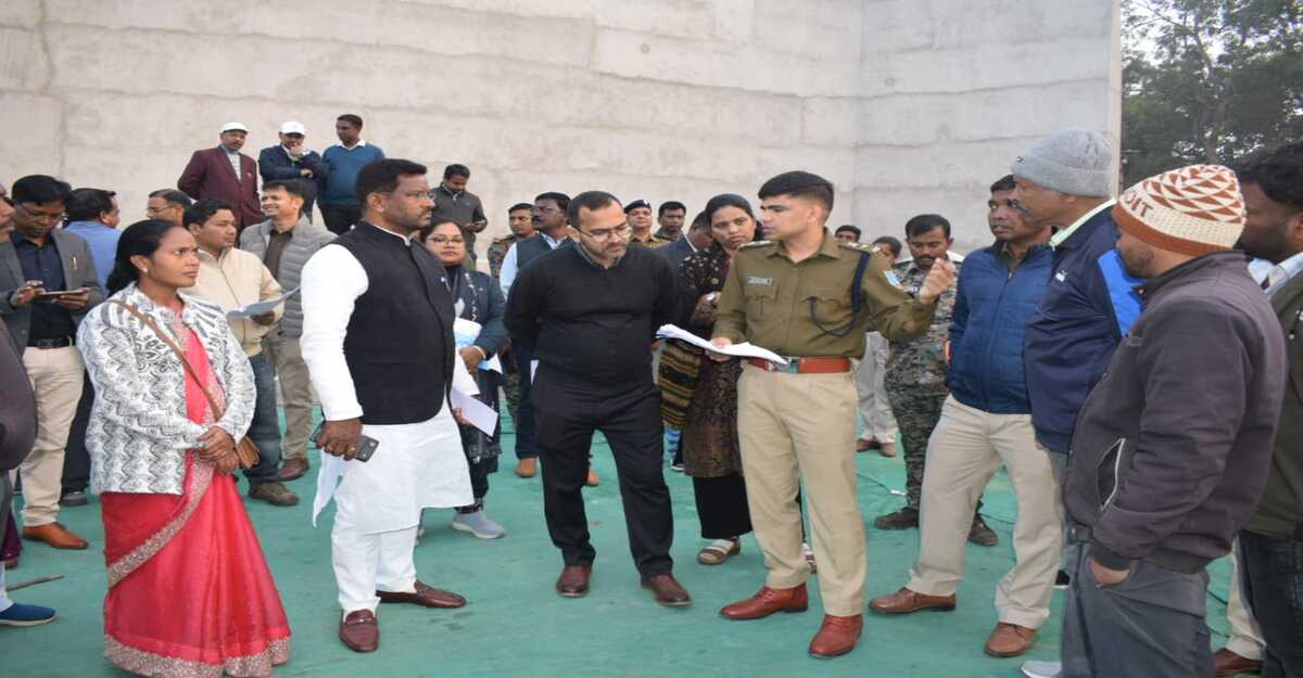 निरीक्षण के दौरान उपायुक्त एवं पुलिस अधीक्षक ने शहीद पार्क, पथ निर्माण विभाग (PWD) गेस्ट हाउस, अर्जुना स्टेडियम परिसर में निर्माणाधीन हेलीपैड समेत अन्य महत्वपूर्ण स्थानों का जायजा लिया। अधिकारियों ने गेस्ट हाउस एवं हेलीपैड से जुड़े लंबित निर्माण कार्यों को निर्धारित समय-सीमा के भीतर पूरा करने के निर्देश संबंधित कार्यदायी एजेंसियों को दिए।