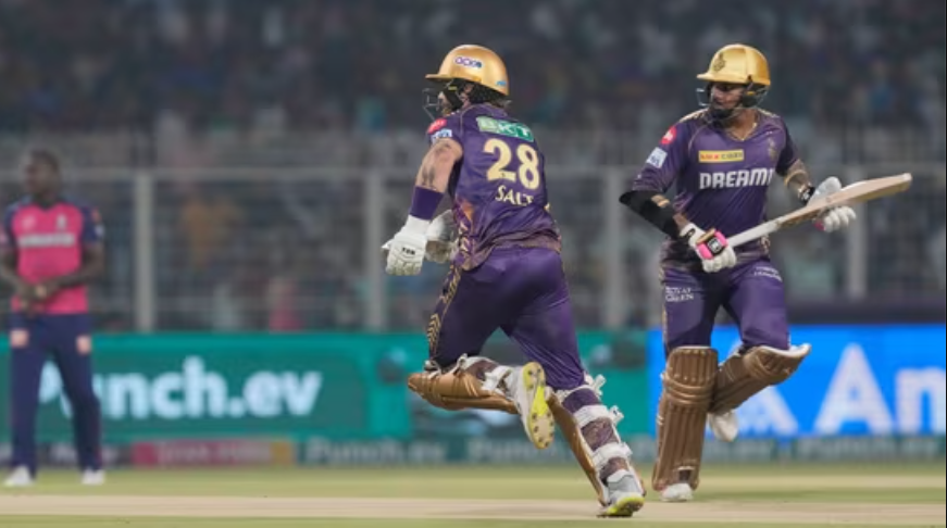 टॉस हारकर पहले बल्लेबाजी करने उतरी कोलकाता ने राजस्थान के खिलाफ सुनील नरेन की तूफानी पारी के बदौलत 20 ओवर में छह विकेट खोकर 223 रन बनाए। इस मैच में केकेआर की शुरुआत कुछ खास नहीं हुई थी। सलामी बल्लेबाजी के लिए आए फिल सॉल्ट सिर्फ 10 रन बनाकर पवेलियन लौट गए। उन्हें आवेश खान ने चौथे ओवर की तीसरी गेंद पर निशाना बनाया। इसके बाद तीसरे नंबर पर बल्लेबाजी के लिए आए अंगकृष रघुवंशी ने दूसरे विकेट के लिए नरेन के साथ 85 रन की साझेदारी निभाई।