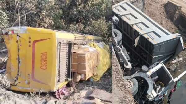 दूसरी घटना नवलशाही थाना क्षेत्र में घटी, जहां कोडरमा – गिरिडीह मुख्य मार्ग पर स्थित पुरनाडीह पुल से एक हाईवा गिर गया। वाहन डोमचांच से पुरनाडीह की ओर जा रहा था, जब पुल का रेलिंग तोड़ते हुए वाहन नीचे गिर गया। हादसे में हाईवा का चालक बच गया, लेकिन वह घटना स्थल से फरार हो गया। वाहन संख्या (जेएच 12 क्यू 6846) और चालक की पहचान सोनू तुरी के रूप में हुई है, जो मरकच्चो थाना क्षेत्र के बरियारडीह का निवासी है।