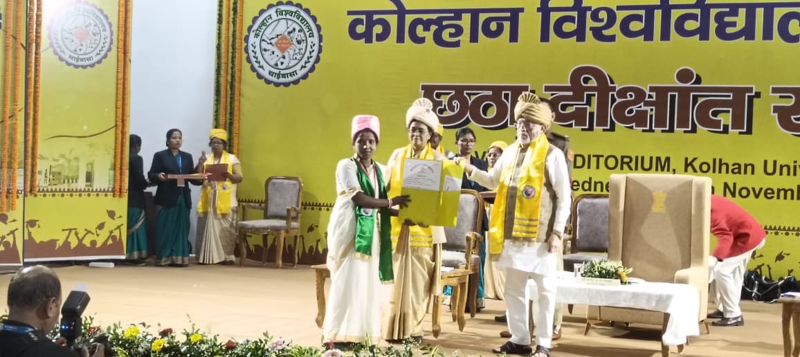 Chaibasa (Jharkhand) : कोल्हान विश्वविद्यालय में का बहुप्रतीक्षित छठा दीक्षांत समारोह बुधवार को संपन्न हुआ। समारोह में वर्ष 2021 से लेकर 2024 तक के पासआउट छात्र-छात्राओं को डिग्री प्रदान की गई। समारोह में सफल रहे शोधार्थियों को भी पीएचडी की उपाधि प्रदान की गई।