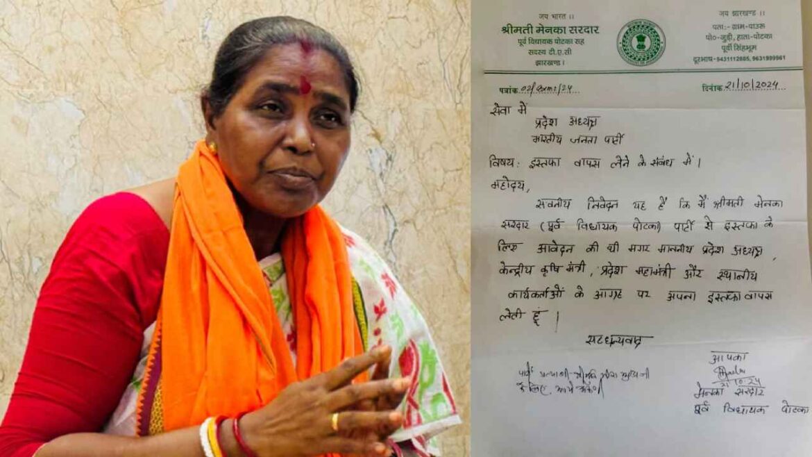 जमशेदपुर : टिकट नहीं मिलने से आहत होकर भारतीय जनता पार्टी (BJP) से इस्तीफा दे चुकीं पोटका की पूर्व विधायक मेनका सरदार ने अपना निर्णय बदल दिया है। पार्टी के वरिष्ठ नेताओं और कार्यकर्ताओं के काफी मान-मनौव्वल के बाद उन्होंने अपना इस्तीफा वापस लेने का फैसला किया है। इस संबंध में उन्होंने पार्टी के प्रदेश अध्यक्ष बाबूलाल मरांडी को पत्र लिखकर जानकारी दी है।