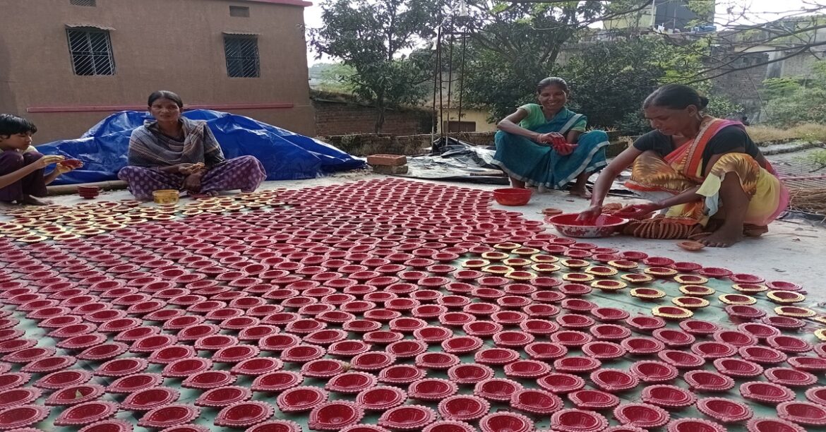 रांची के करमटोली की महिलाएं, जिन्होंने मईयां सम्मान और विधवा पेंशन की राशि को केवल भरण-पोषण तक सीमित न रखकर उसे आत्मनिर्भरता और रोजगार का माध्यम बना दिया है। करमटोली में रहने वाली कुछ महिलाओं ने छह महीने तक मिलने वाली मईया सम्मान योजना की 2500 रुपये मासिक राशि और विधवा पेंशन की 1000 रुपये प्रति माह को इकट्ठा किया। इस छोटी-सी पूंजी को खर्च करने के बजाय उन्होंने कुम्हारों से दीये खरीदकर उन्हें सजाकर बेचने की योजना बनाई। जिससे कि वे उसी पैसे से कमाई कर रही है। दीपावली और छठ जैसे त्योहारों के मद्देनज़र उन्होंने आकर्षक रंगों, डिजाइनों और पारंपरिक कलाकृतियों से इन साधारण दीयों को नया रूप दिया।