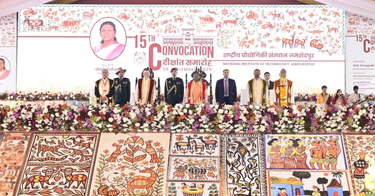 Jamshedpur : राष्ट्रीय प्रौद्योगिकी संस्थान (एनआईटी) जमशेदपुर का 15वां दीक्षांत समारोह सोमवार को संस्थान परिसर में पहली बार किसी राष्ट्रपति की उपस्थिति में संपन्न हुआ। दीक्सषांत मारोह की मुख्य अतिथि राष्ट्रपति द्रौपदी मुर्मू रहीं, जिन्होंने मेधावी छात्रों को डिग्रियां व पदक प्रदान किए और अपने प्रेरणादायी संबोधन से युवा इंजीनियरों में राष्ट्र निर्माण का जज्बा जगाया।