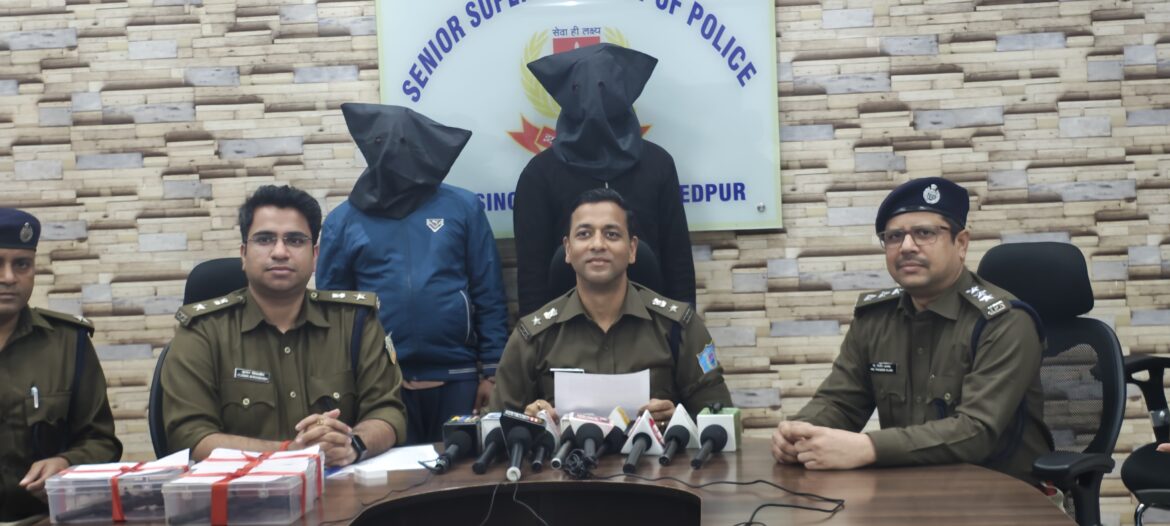 जमशेदपुर : परसुडीह के छोलगोड़ा निवासी 40 वर्षीय अभिषेक हेंब्रम की हत्या के मामले में पुलिस ने मुख्य आरोपियों को गिरफ्तार कर लिया है। 14 नवंबर की रात हुई इस हत्या में मृतक की पत्नी ने चचेरे भाई रौशन हेंब्रम और उसके साथी भोला पर आरोप लगाया था। पुलिस ने दोनों आरोपियों को ओडिशा से गिरफ्तार कर घटना में इस्तेमाल किए गए दो हथियार और बाइक भी बरामद कर ली है। शुक्रवार को एसएसपी किशोर कौशल ने प्रेस कांफ्रेंस कर मामले का खुलासा किया।