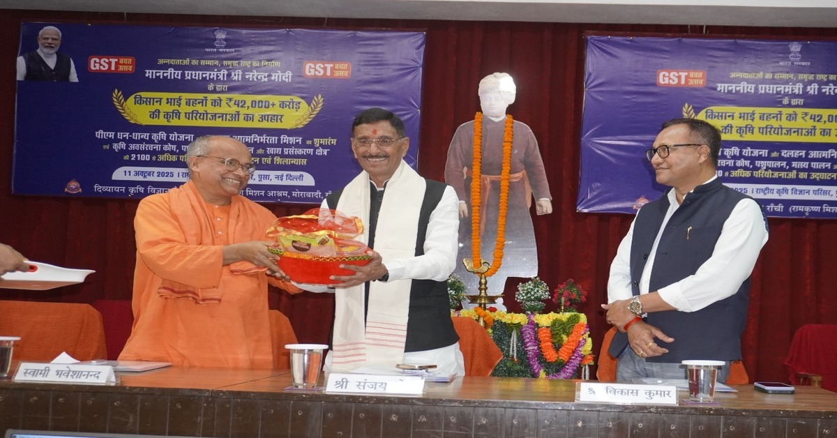 RANCHI NEWS: दिव्यायन कृषि विज्ञान केंद्र में PM योजना का शुभारंभ, संजय सेठ बोले– किसानों की खुशहाली ही सरकार की प्राथमिकता, 522 किसानों ने लिया भाग।