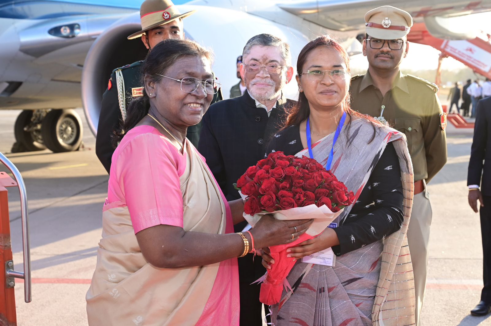 PRESIDENT DROUPADI MURMU : राष्ट्रपति द्रौपदी मुर्मु रांची पहुंचीं, गवर्नर ने किया स्वागत