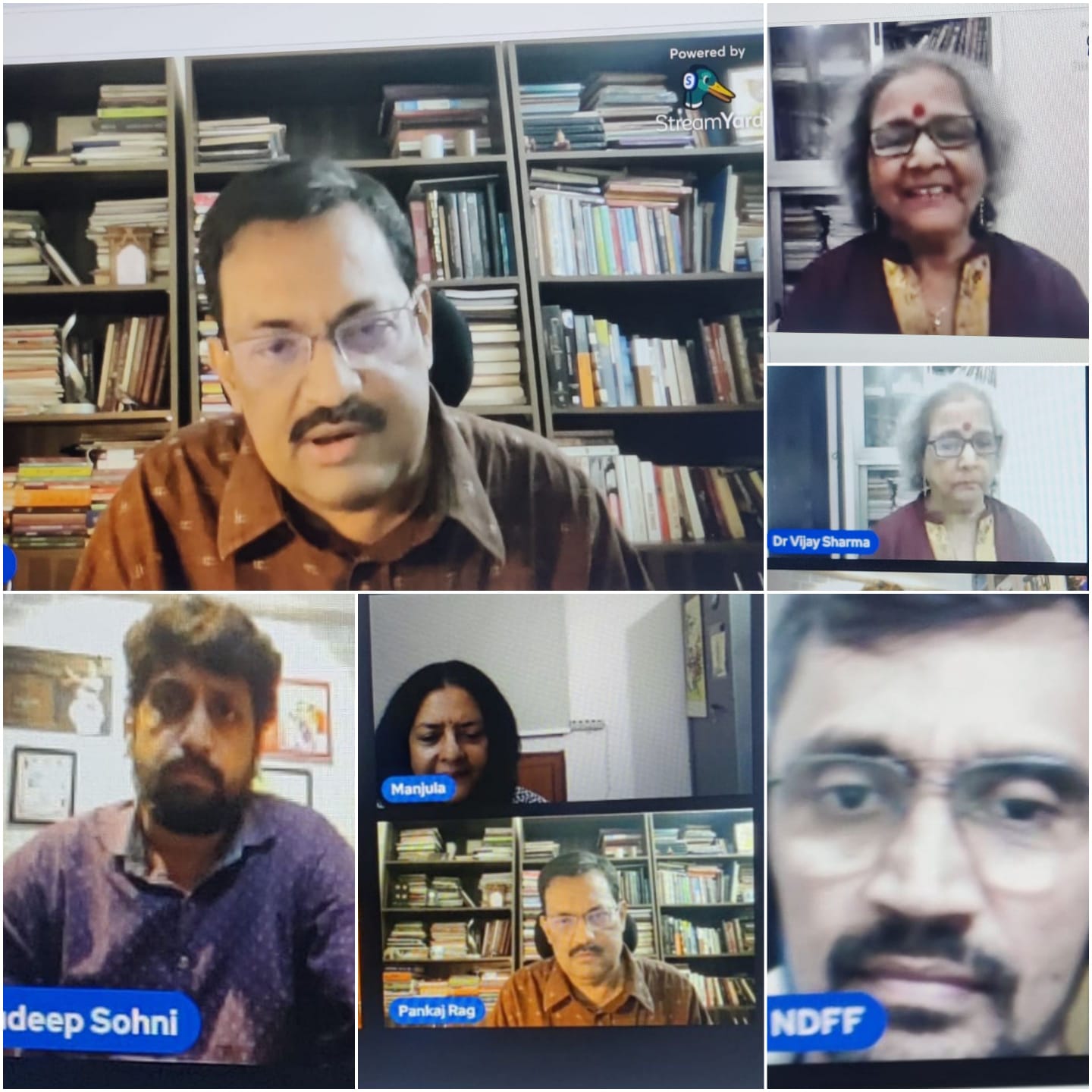डॉ. राकेश पांडेय, डॉ. मंजुला मुरारी, आशीष कुमार सिंह तथा सुदीप सोहनी के प्रश्नों का उत्तर देते हुए आमंत्रित वक्ता पंकज राग ने विस्तार से बताया कि ‘धुनों की यात्रा’ के लिए उन्होंने हजारों गीतों को विभिन्न स्रोतों से एकत्र किया। कुछ उन्हें आसानी से प्राप्त हुए, कुछ के लिए काफ़ी मेहनत करनी पड़ी।