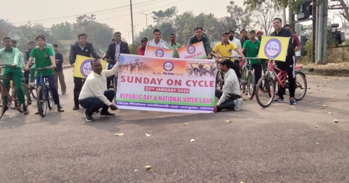 रामगढ़ : आगामी गणतंत्र दिवस और राष्ट्रीय मतदाता दिवस के अवसर पर रामगढ़ जिले में संडे ऑन साइकिल कार्यक्रम का आयोजन किया गया। इस कार्यक्रम का उद्देश्य मतदाता जागरूकता बढ़ाना और लोकतांत्रिक प्रक्रियाओं में नागरिकों की भागीदारी को प्रोत्साहित करना था। “माई इंडिया, माई वोट” थीम के तहत आयोजित इस कार्यक्रम में जिला प्रशासन के अधिकारियों, युवाओं और आम नागरिकों ने बड़े उत्साह के साथ हिस्सा लिया।