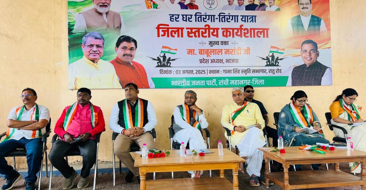 RANCHI: भारतीय जनता पार्टी रांची महानगर जिला के तत्वावधान में रविवार को आगामी 10 से 15 अगस्त तक निकाली जाने वाली तिरंगा यात्रा (हर घर तिरंगा अभियान) को लेकर महानगर कार्यालय में एक कार्यशाला का आयोजन किया गया। महानगर अध्यक्ष वरुण साहू की अध्यक्षता में आयोजित कार्यशाला में पार्टी के प्रदेश अध्यक्ष बाबूलाल मरांडी विशेष रूप से शामिल हुए।
