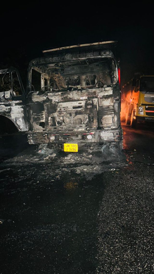 Home » टीपीसी के उग्रवादियों ने दामोदर घाटी परियोजना (डीवीसी) कोल माइंस के दो हाइवा में लगाई आग