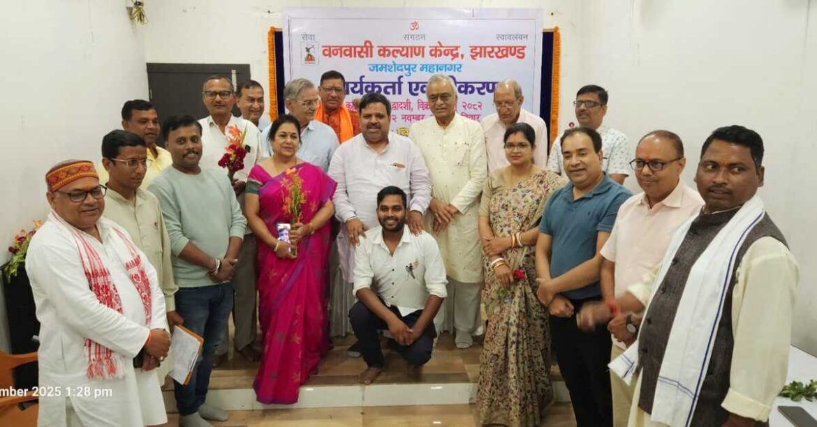 JAMSHEDPUR: वनवासी कल्याण केंद्र झारखंड जमशेदपुर महानगर का कार्यकर्ता एकत्रीकरण सह महानगर कार्यसमिति पुनर्गठन समारोह तुलसी भवन बिस्टुपुर में संपन्न हुआ। कार्यक्रम का शुभारंभ भारत माता, धरती आबा भगवान बिरसा मुंडा और पूज्य बालासाहब देशपांडे के चित्र पर पुष्पांजलि अर्पित कर किया गया। इस दौरान क्षेत्रीय संगठन मंत्री प्रफुल्ल आकांत, प्रांत अध्यक्ष सुदान मुंडा, उपाध्यक्ष राजेंद्र झुनझुनवाला, महामंत्री धनंजय सिंह और संगठन मंत्री सुशील मरांडी सहित कई गणमान्य उपस्थित रहे। सरस्वती शिशु विद्या मंदिर बहरागोड़ा की बहनों ने वाद्य यंत्रों के साथ स्वागत गीत प्रस्तुत किया।