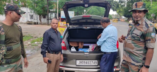 वाहनों की जांच करते अधिकारी