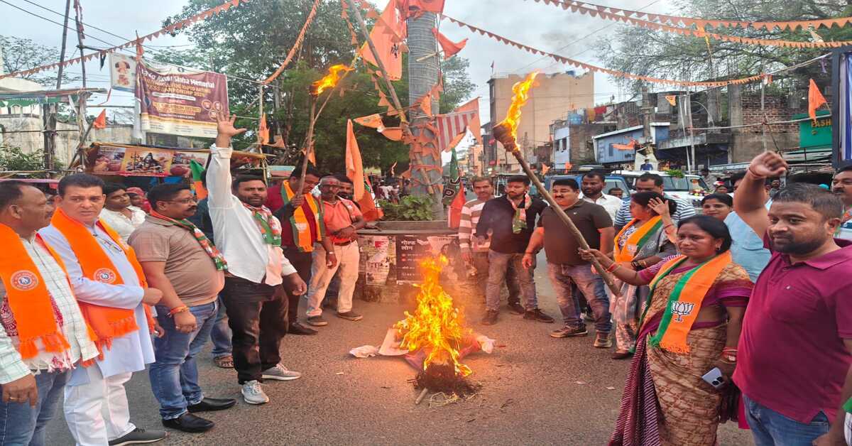 Chaibasa : भारतीय जनता पार्टी की चाईबासा जिला इकाई के तत्वावधान में जिला अध्यक्ष गीता बालमुचू के नेतृत्व में मंगलवार को महिला सम्मान एवं अधिकारों की रक्षा को लेकर जोरदार विरोध प्रदर्शन किया गया। कार्यक्रम के तहत चाईबासा स्थित पोस्ट ऑफिस चौक में विपक्ष के नेता राहुल गांधी का पुतला दहन किया गया तथा उनके खिलाफ नारेबाजी की गई।